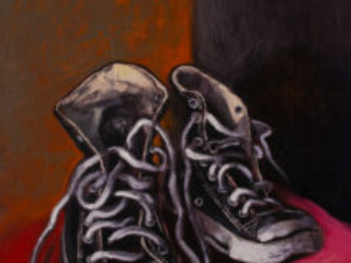 Ortega begins by carefully arranging and lighting the objects on a specially constructed set in his studio. He paints in silence, integrating his breath and posture with the act of applying pigment on linen. With their subtle color gradations and painterly qualities the still-lifes showcase the mastery and immediacy of his technique, and reference inspirations both historic and contemporary. In Nirvana, an old pair of Converse sneakers and a guitar pedal become a monument to Kurt Kobain, while a hat and tulip in another honor Van Gogh’s Spirit.